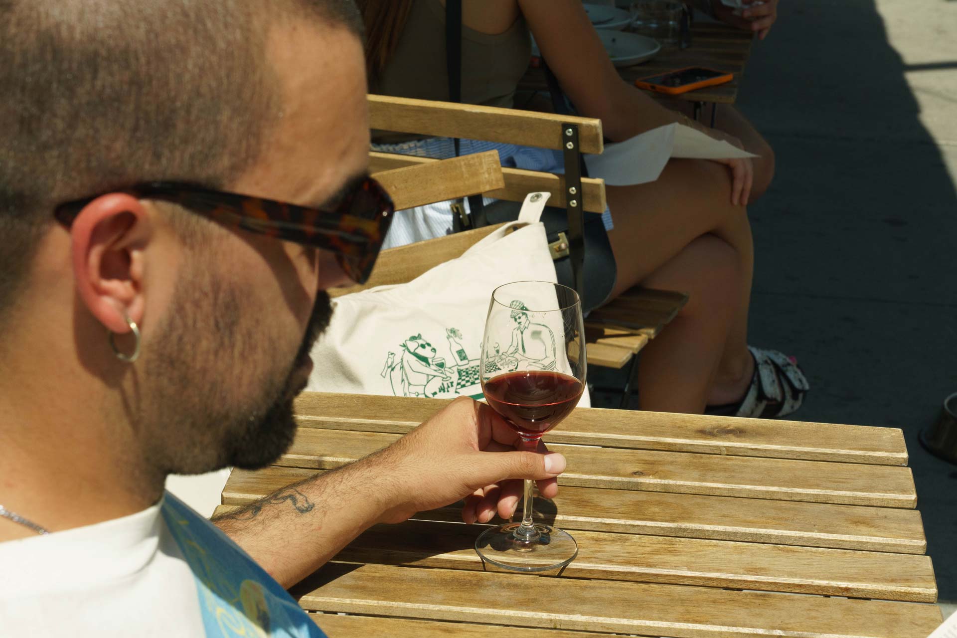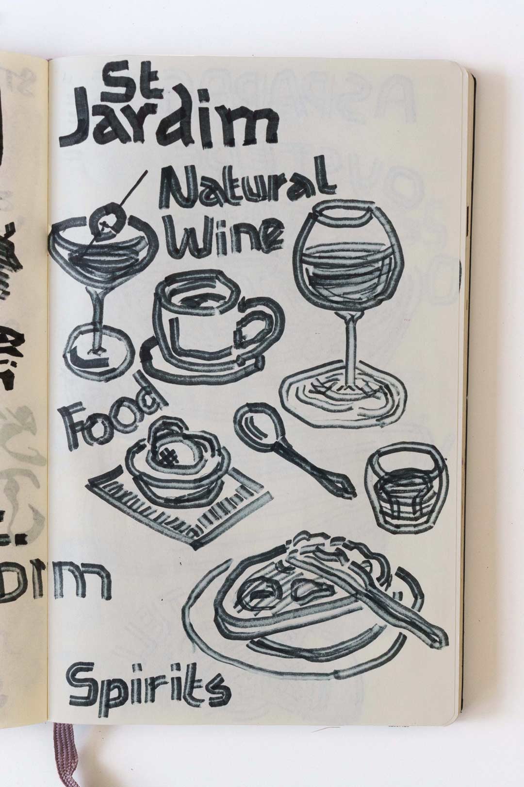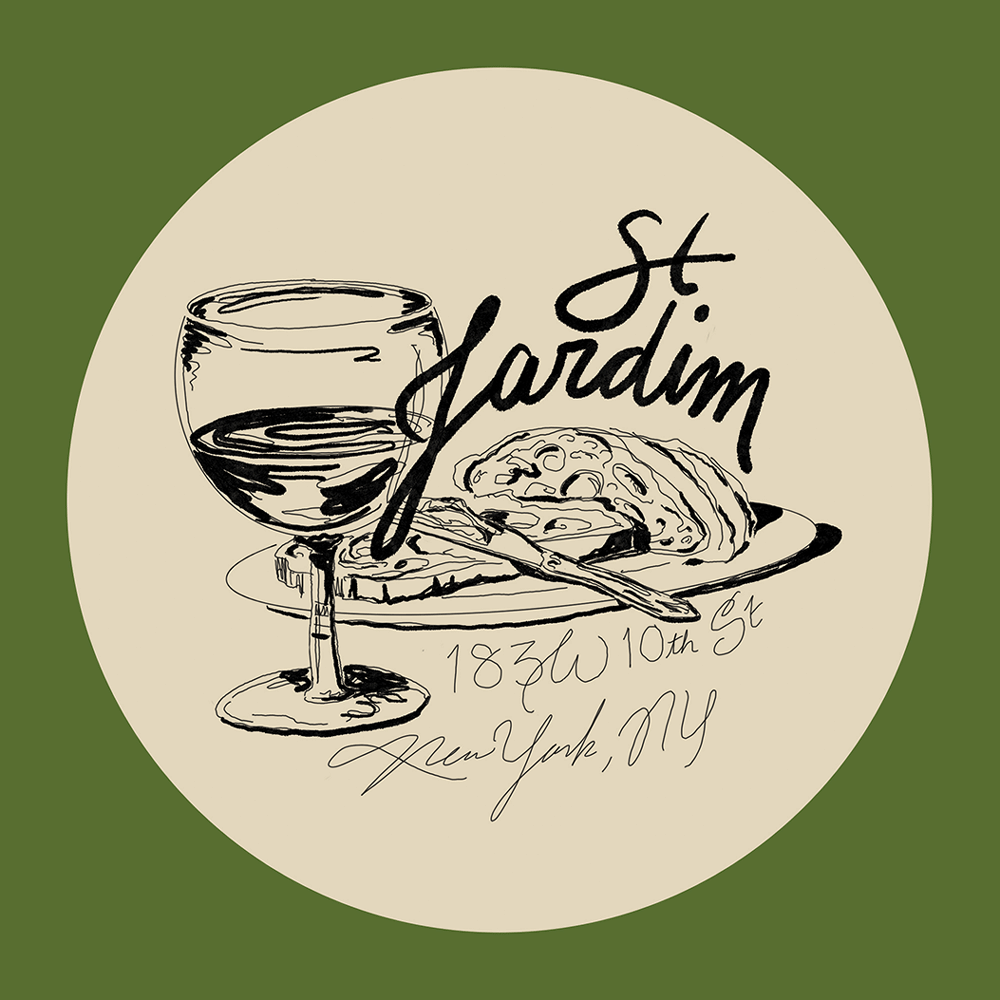 Merch and brand touchpoints for a natural wine bar and cafe in the West Village.